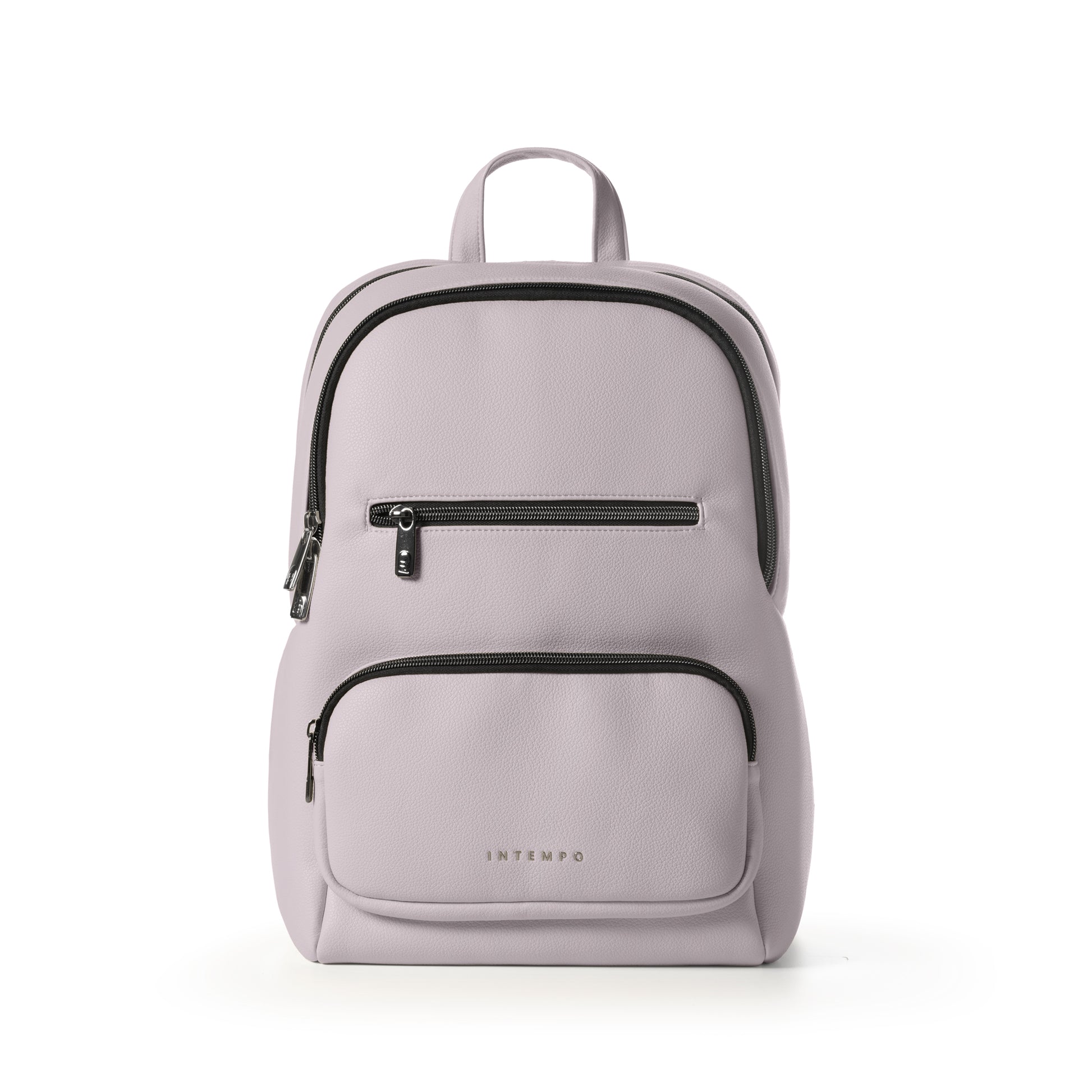 Zaino small in morbida similpelle rugata, grande vano centrale con tasca per PC 15” e tablet, vano anteriore, doppia tasca frontale, maniglia superiore, tracolle ergonomiche. Cipria